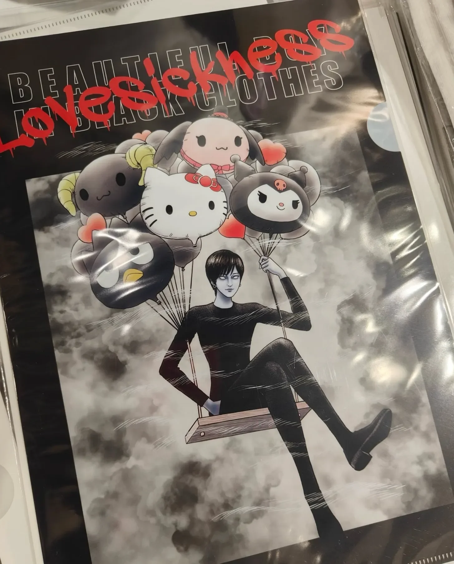 The collab is official (not fan art): it’s Junji Ito × Sanrio Characters, a licensed crossover that turns Ito’s icons into limited-edition merch, including a few oddball Sanrio character mashups.
